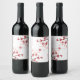 Red/White Cherry Blossoms / Sakura Spring Flowers And Simple Double Happiness Chinese Wedding Wine / Bottle Label.