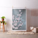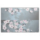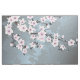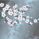 This fabric features an elegant dusty pink cherry blossom branch on a shimmering dusty blue background.