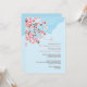 A spring invitation featuring pink cherry blossoms and butterflies against a blue sky. Perfect for communions, birthday celebrations and more.