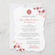 White/Red Cherry Blossoms/Sakura Spring Flowers And Simple 'Shou' (壽/寿) Longevity Symbol, Double-Sided, Chinese Birthday Invitation Flat Card.