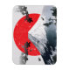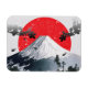 The birth of a new season in Japan. A beautiful illustration of sakura cherry blossoms and petals cascading in the breeze with Mount Fuji and Japanese flag background of the rising sun. The perfect distressed modern contemporary art design ideal for a Christmas present, birthday gift, nursery decor or home decor.