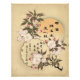 Cherry blossoms against the sun or moon. Vintage japanese print.