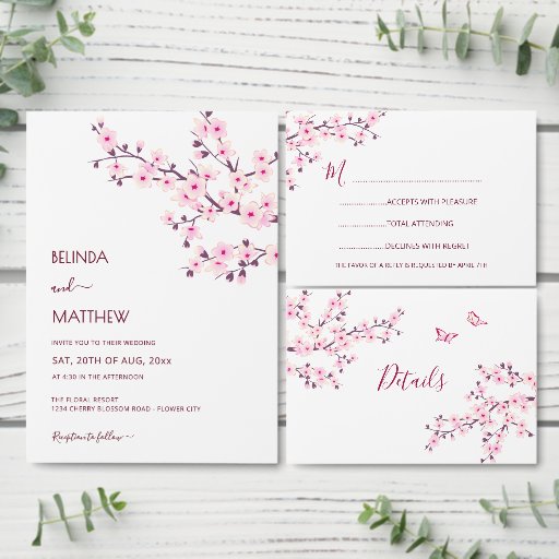 Cherry Blossoms Pink Wedding Guest Names Table Number