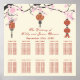 A seating plan featuring pink cherry blossoms and red chinese lanterns with text in cranberry red.