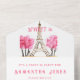 Cherry Blossoms, pink, pretty, girly Sweet Sixteen All in One Invitation. Eiffel Tower, Paris, France, sakura, Japanese flowers illustration. Tri-fold elegant, chic, unique, invitations. Customise with your details. Order in time to avoid a disappointment.