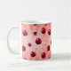 A vibrant display of fresh, red cherries with green stems, set against a dynamic red background with radiating light rays. The cherries appear to be in motion, creating a lively and appealing visual.