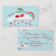 Cute cherries sitting on a cloud raining hearts with rainbow on a removable blue background on this home baking or bakery business card for a cookies, cake, cupcake, or pie business.