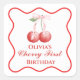 Cherry first birthday Pink Bow Gingham Square Sticker