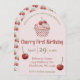 Cherry First Birthday Watercolor Coquette Cupcake Invitation