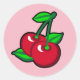 Get this cool classic cute round sticker with a cute cartoon set of red cherries. The background is pale pink.