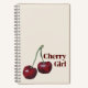 A minimalist "Cherry Girl" illustration featuring two glossy, perfectly ripe cherries on a soft cream background. Rendered in a digital style that mimics soft watercolor textures with subtle shading.