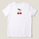A funny t-shirt with an illustration of cherries and its green leaves, and two red customisable texts: perfect gift for gardener, veggie or lovers of fruits!
