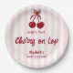 Cherry on Top Baby Shower Pink Stripes Coquette Paper Plate