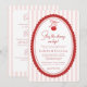 Cherry on Top Coquette Bow Pink Couples Shower Invitation - An adorable design featuring a hand drawn cherry hanging from a coquette bow with hand written and modern typography. The background is trendy pink and white stripes, the perfect way to celebrate your little one. Our easy to use template makes it so easy for your personalize your invitation. Cherry on top Coquette Bow Pink Baby Shower will be part of a Baby Shower Collection.The back of the invitation features the happy parents to be. Option available without photo.
