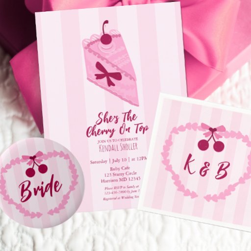 She’s the cherry on top! Celebrate the bride to be with these fun pink bridal shower invitations.