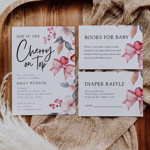 Cherry on Top Pink Bow Coquette Baby Shower Invitation