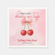 This design features a girl baby shower theme "She is the Cherry on Top" with pink watercolor background, two cute cherries tied with a pink bow and elegant modern fonts. This product can be easily personalised with your personal event details.