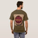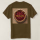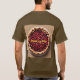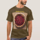 This is a Cherry Pie T-Shirt. The t-shirt is a Brown Basic Dark T-Shirt. The cherry pie image was created with generative art. The artwork features a fresh cherry pie on a white plate with a tan background. The words Cherry Pie are above the image on the front and back of the t-shirt. Cherry Pie is in gold text. You can change the text by clicking the Personalise button.