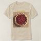 This is a Cherry Pie T-Shirt. The t-shirt is a comfortable cotton t-shirt. The image displays a Cherry Pie on a white plate on a tan background. The cherry pie was created with generative art. The artwork features a fresh cherry pie on a white plate with a tan background. The words Cherry Pie are above the image on the front and back of the t-shirt. Cherry Pie is in gold text. You can change the text by clicking the Personalise button.