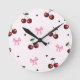 Cherry & Pink Bows Pattern - Coquette Aesthetic Round Clock
