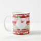 Abstract circles and lines in pink, red, green, and white, with the outline of a white chicken