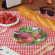 Cherry plum on branch paper plate