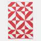 Cherry Red Geometric Deco Cube Pattern Tea Towel
