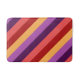 A medium sized bath mat featuring a colourful pattern motif of diagonal stripes in cherry red, melon pink, violet, plum purple, and banana yellow.