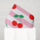 Add a splash of fruity fun to your everyday essentials with this vibrant cherry pattern. Featuring bright red cherries with green leaves set against alternating pink and white stripes, this design blends retro charm with playful energy—perfect for gifts, accessories, and home decor.