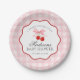 Cherry Sweet Pink Coquette Bow Gingham Baby Shower Paper Plate