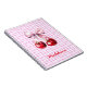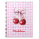 Cherry with Cute Pink Bow on Gingham Custom Name Notebook