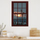 Enhance the decor of any room with this picturesque poster. The artwork creates the illusion of having a window which is encased by a Cherry Wood Frame on your wall. The realistic scenery of a flock of birds at dusk is original and unique design. The original artwork is 24" x 36" which is the average poster size and was created at high resolution (300 dpi) so re-sizing it is not a problem. The background scene of this poster is a lot wider so you can slide it left or right to feature a different view by clicking on "edit design". See other beautiful scenes in my store. Feel free to contact me if you have any questions.