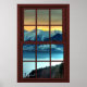Enhance the decor of any room with this picturesque poster. The artwork creates the illusion of having a window which is encased by a Cherry Wood Frame on your wall. The beautiful mountain and lake scenery makes you feel as though you are out in a country cottage looking out at the lake. The original artwork is 24" x 36" which is the average poster size and was created at high resolution (300 dpi) so re-sizing it is not a problem. This is #2 of 3 if you're interested in having 3 picture windows side by side. See the other 2 mountain scenes in this series at my store.