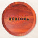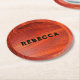 Cherry wood texture custom monogram. round paper coaster