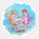 Two cherubs sit on heavenly clouds, in watercolour form.