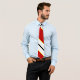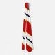 You'll look great in this red and white-striped tie featuring thin, black and orange stripes.