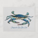 Colourful notecard featuring a watercolor style image of the Chesapeake Bay Blue Crab, noted for its sweet meat which is used in world famous crab cakes in Virginia and Maryland.