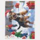 A strong Chesapeake Bay Retriever runs through the snowy winter scene, wearing a festive red Christmas hat. This lively design highlights the breed’s wavy coat, loyal nature, and adventurous spirit while capturing the warmth and joy of the holiday season. A heartwarming winter moment full of festive charm.
