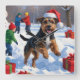 A strong Chesapeake Bay Retriever runs through the snowy winter scene, wearing a festive red Christmas hat. This lively design highlights the breed’s wavy coat, loyal nature, and adventurous spirit while capturing the warmth and joy of the holiday season. A heartwarming winter moment full of festive charm.
