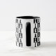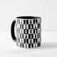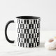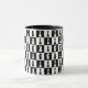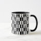 A stylish ringer mug with a black and white chess game figures pattern design.