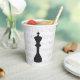 This chess design features a black, grey and white colour scheme with a classic black King chess piece.