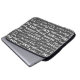 Cool soft gray laptop sleeve printed with a typographic pattern of words associated with playing chess. Including Knight, King, Queen, Pawn, Checkmate, Bishop and Rook. Ideal for the chess player in your life.