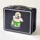This is a standard metal lunchbox that appears to work just fine. We designed this box ourselves with an uploaded photo and custom text on the front and back. It looks absolutely beautiful except the front of the lunchbox is not centered like it shows in the photo. The print borders don't align with the inset flat part of the box where the preview photo online showed it perfectly centered in there. The back looks nice and centered though.
