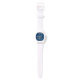 Watch featuring chess design with dark and light chess pieces in rows on a blue background.