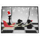 This funny chess Christmas gift bag design features Santa's sleigh and reindeer. The Santa Claus is the King chess piece wearing a Santa hat and the reindeer are two Knight chess pieces. They are on a chessboard in front of a winter snow scene with holiday lights.