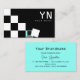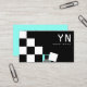 Make a lasting impression with this cool and modern business card design featuring black and white chequered pattern and the backgrounds are black and bright teal.