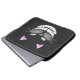 Laptop sleeve featuring "Chester the Cat". Black background with Chesters smiling face.