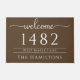 Charming and classic custom doormat features "welcome" in elegant script paired with your family’s last name, address and house number. Designed with clean stripe accents, this doormat offers a timeless look that can be personalised to match your entryway.