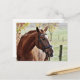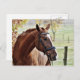 Chestnut Horse with Blaze, Bridle, in Pasture Postcard