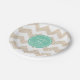 Customisable 30th Birthday Party Paper Plate with chevron and customisable colour into round tag. You can easily change background colour ((here aqua mint colour) and text colour (name), font, size and position by clicking the customise button. Matching Chevron Birthday paper Napkins, birthday save the date, invitation and guest book. Don't forget the whole collection.